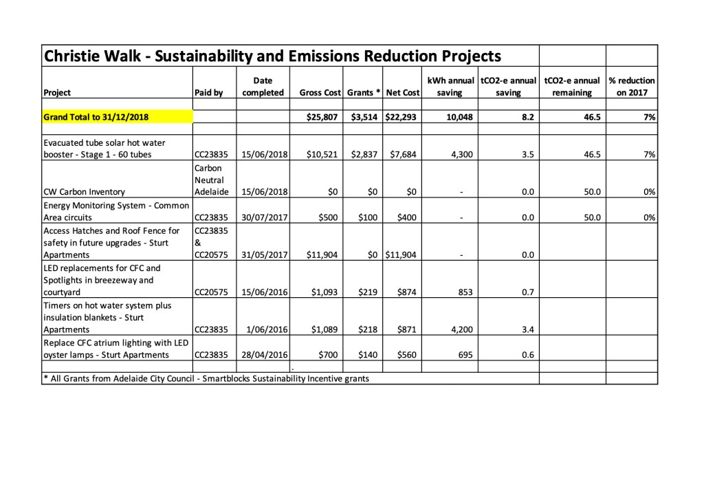 - Abatement project 2018 (Evacuated tube solar hot water booster – Stage 1 – 60 tubes) = 3.5tCO2-e reduction.