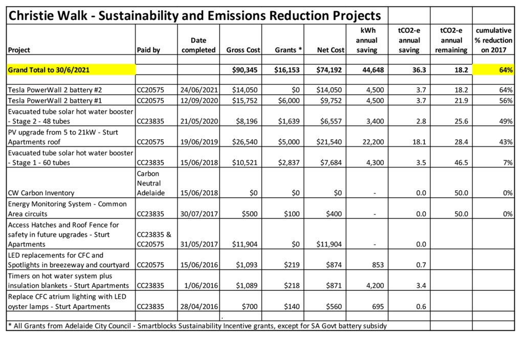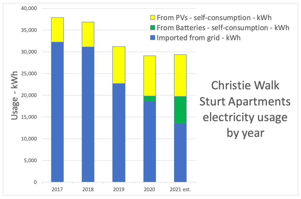 In September 2020 we installed our first battery at Sturt Apartments, Christie Walk. You can read the story of our modelling, battery choices and lessons learned in Episode 7 – Battery storage – Tesla PowerWall 2