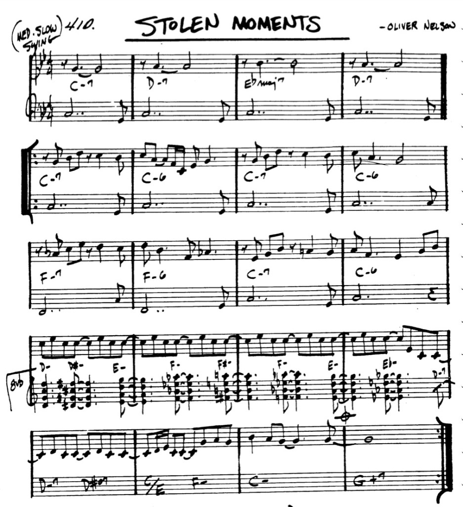 The 4-bar intro the Oliver Nelson’s “Stolen Moments” – simple, unique and evocative.
